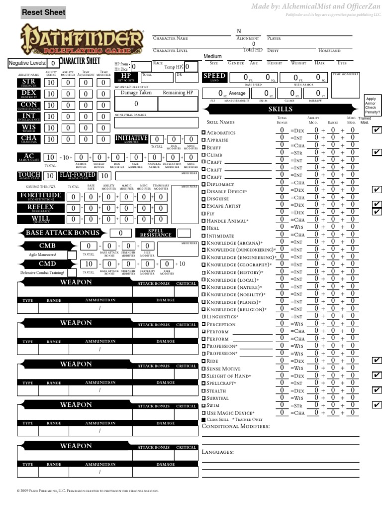 Pathfinder Character Sheet Printable